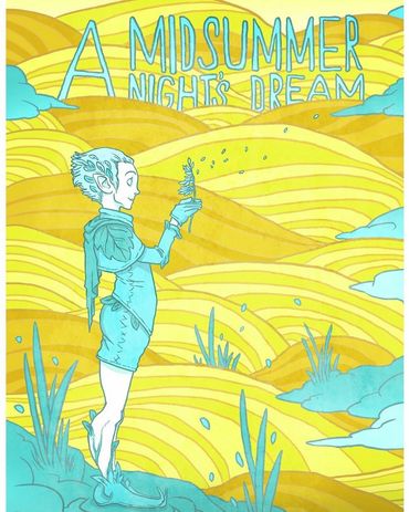 No set! In Shakespeare's time, there was no set, just a wooden stage adorned with only a few practical measures, like a log to sit on or perhaps a wand to lull characters to sleep.